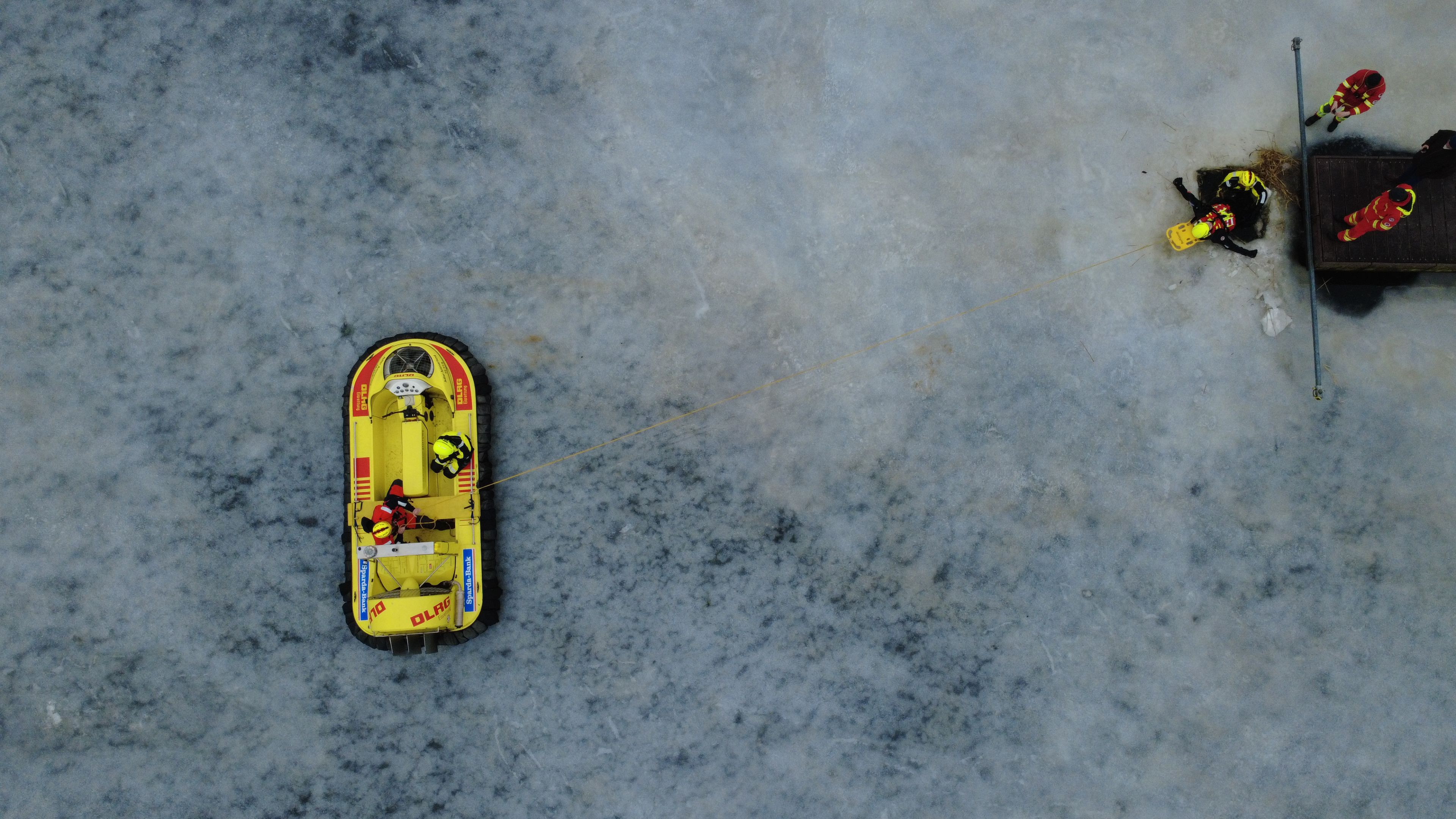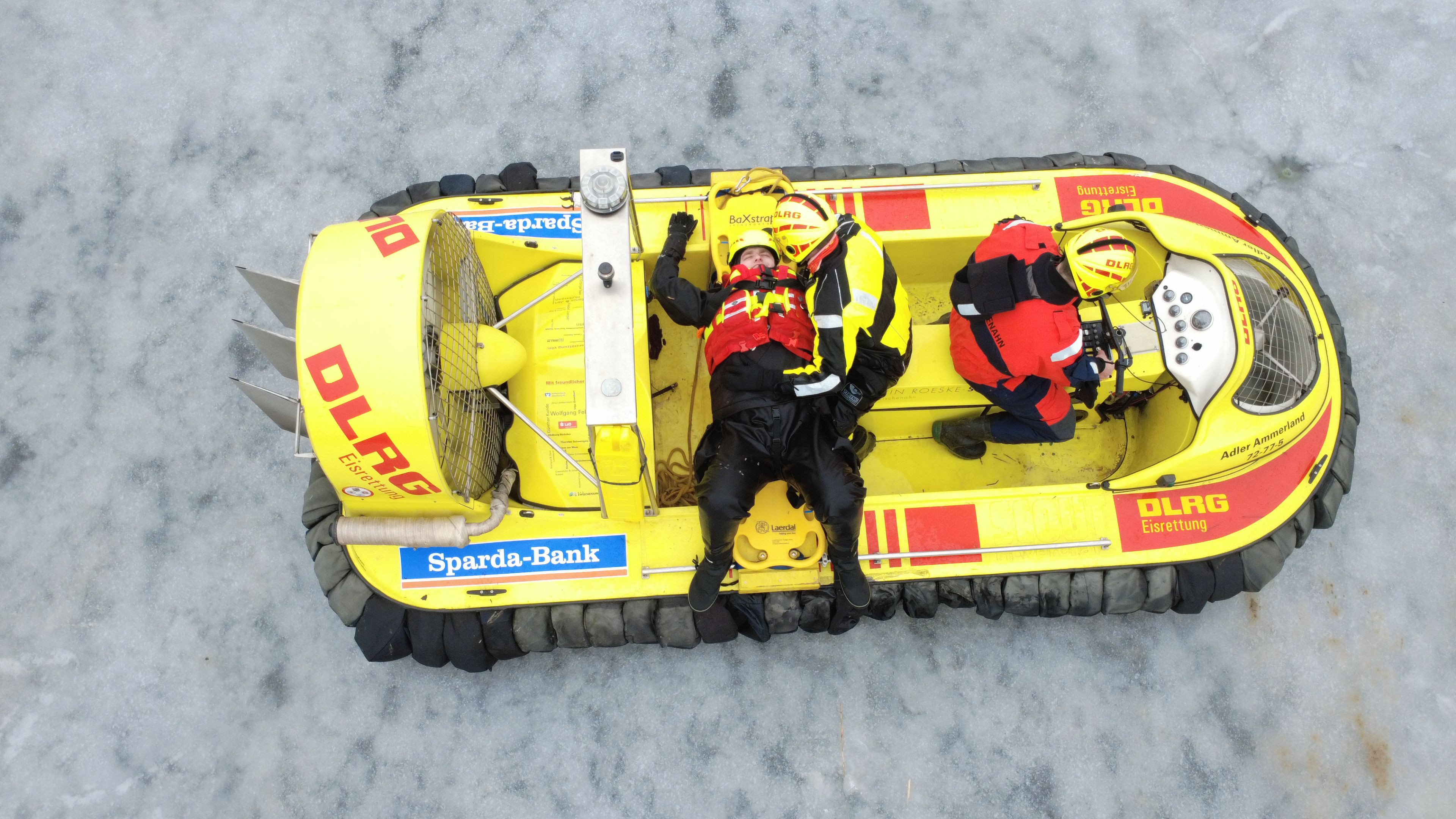 Bei einer Eisrettung im Jahre 2002 hat man festgestellt, wie hilflos die Retter bei Eiseinbrüchen auf dem Meer sind, die sich weit vom Ufer entfernt zugetragen haben, wenn sie nur auf manuelles Eisrettungsgerät zurückgreifen können. Daraufhin wurde in einer beispiellosen Spendenaktion soviel Geld gesammelt, dass ein Hovercraft angeschafft werden konnte. Mittlerweile ist das jetzige Luftkissenboot bereits ein größeres und technisch weiterentwickeltes Exemplar.