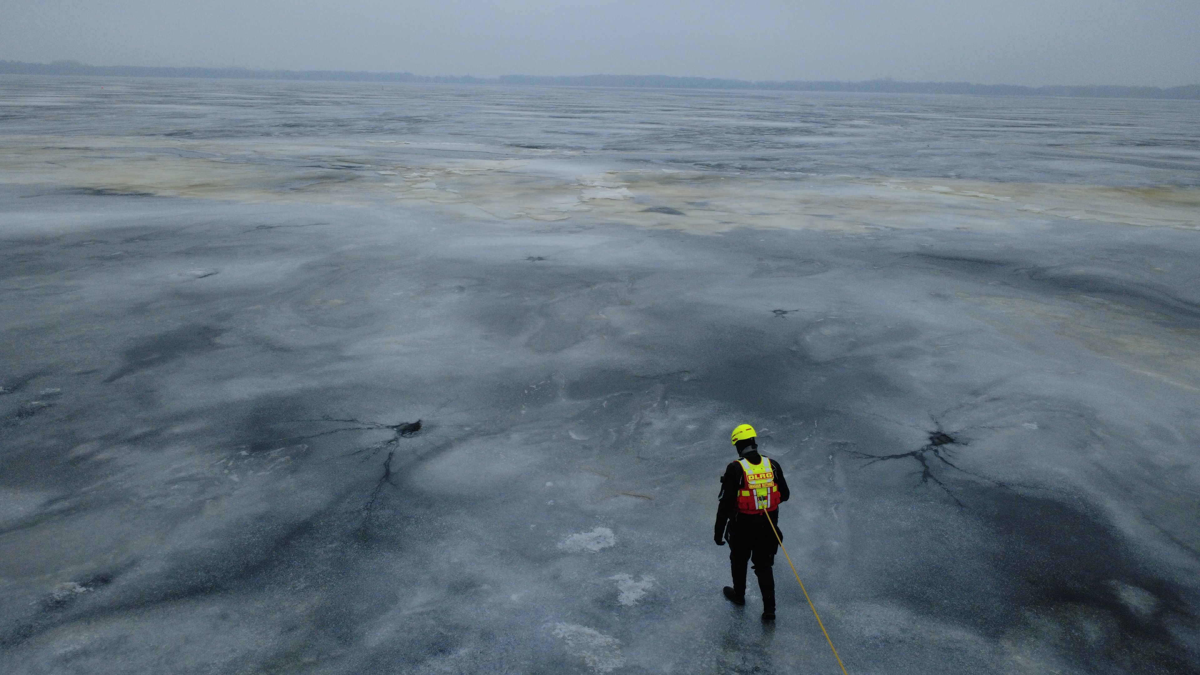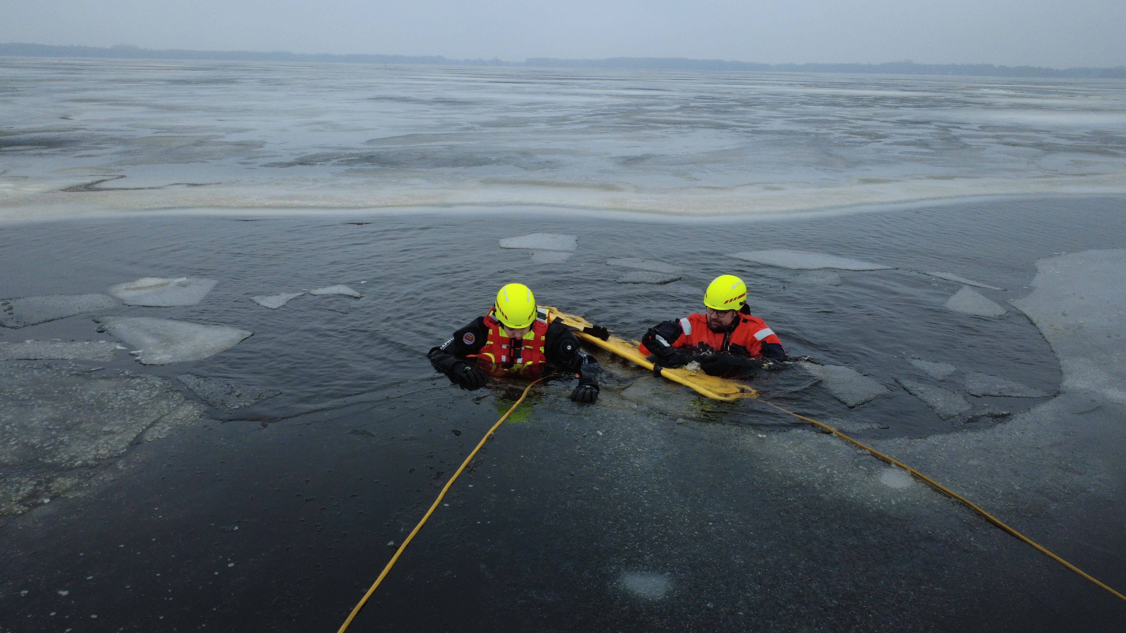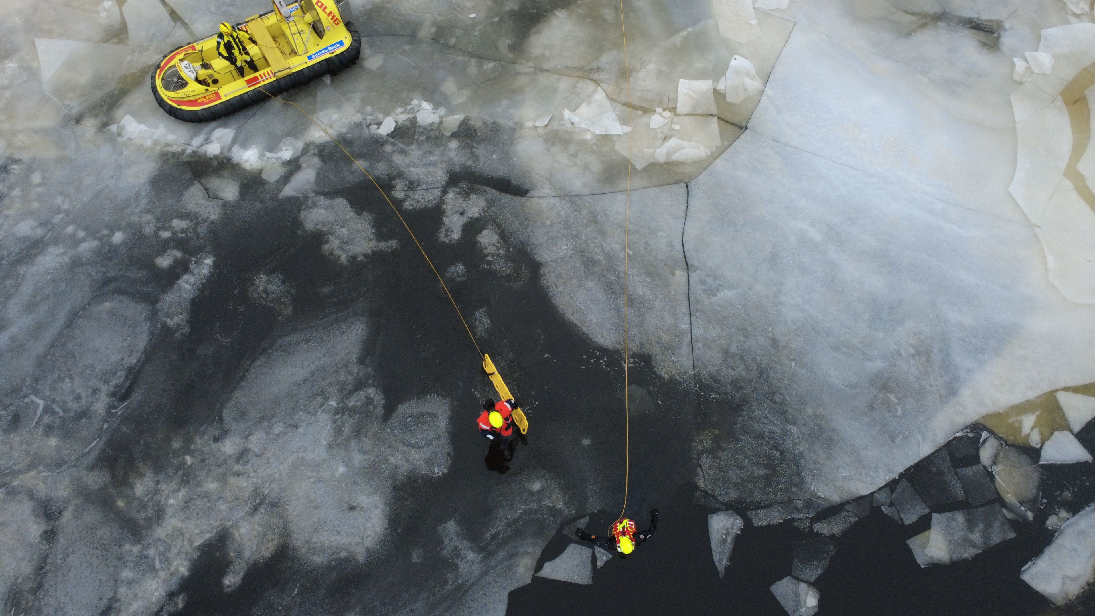 Am Wochenende probten die Eisretter der DLRG Bad Zwischenahn auf dem brüchigen Eis des Zwischenahner Meeres den Ernstfall: Person im Eis!